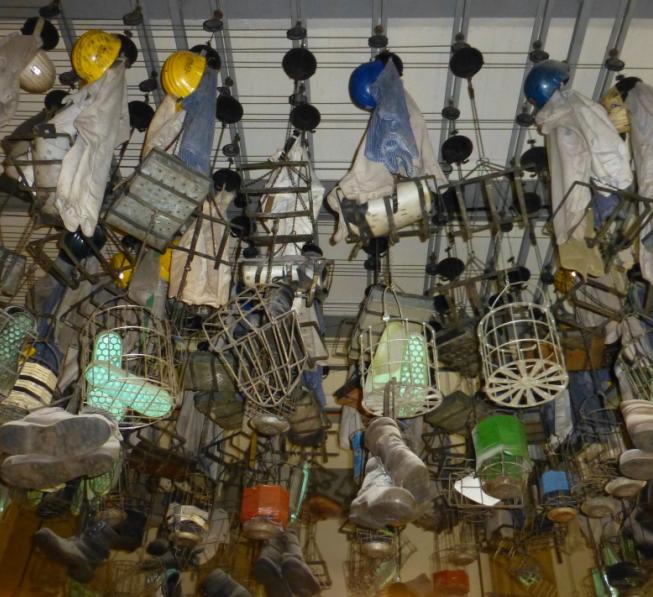 ... hier gehen wir bereits in Richtung des Förderkorbes, der uns alle gemeinsam auf die etwa 1.200 Meter (frei von mir geschätzt...!!!) tiefe Sohle bringen wird... |