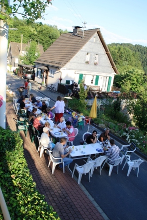 Bei Frischbier aus der dorfeigenen Zapfanlage, Gegrilltem und einem kaum überschaubaren Buffet aus gestifteten Salaten und anderen Beilagen hielten es Groß und Klein lange aus,