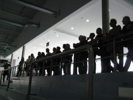 Sporthalle zu einer sehr informativen und mit Detailwissen über Planung und Bau der Halle angereicherten Führung durch die neue Heimstadt des VFL.ngekommen, bevor unser Hallenführer startbereit war.